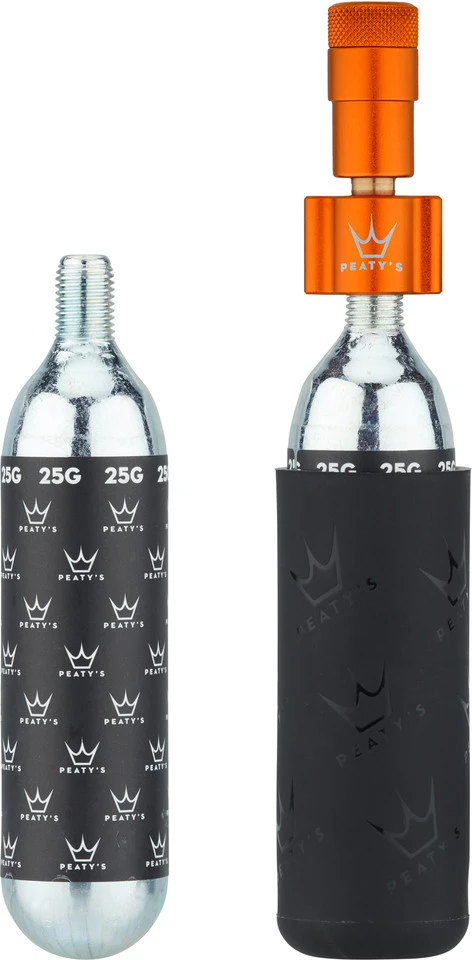 Volumen de envío:1 x Bomba de cartucho Peaty’s Holeshot CO2 Tyre Inflator2 x Cartucho CO2 Peaty’s Holeshot CO2 Cartridge 25 g1 x Funda de silicona Peaty’s