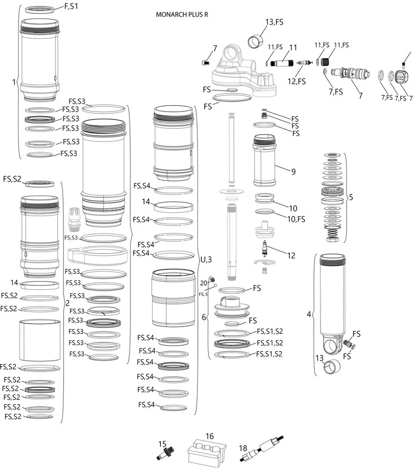 ROCKSHOX Piezas De Repuesto Monarch Plus R (B1-B4 / 2014-2020)