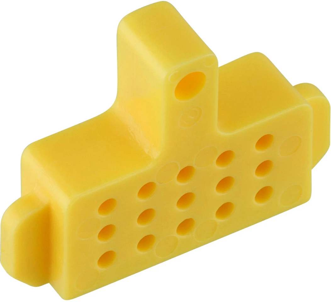 El espaciador de purga Shimano (amarillo) con 15 agujeros es compatible con pinzas de freno de 2 pistones de las series XTR, XT, SLX y Alfine.