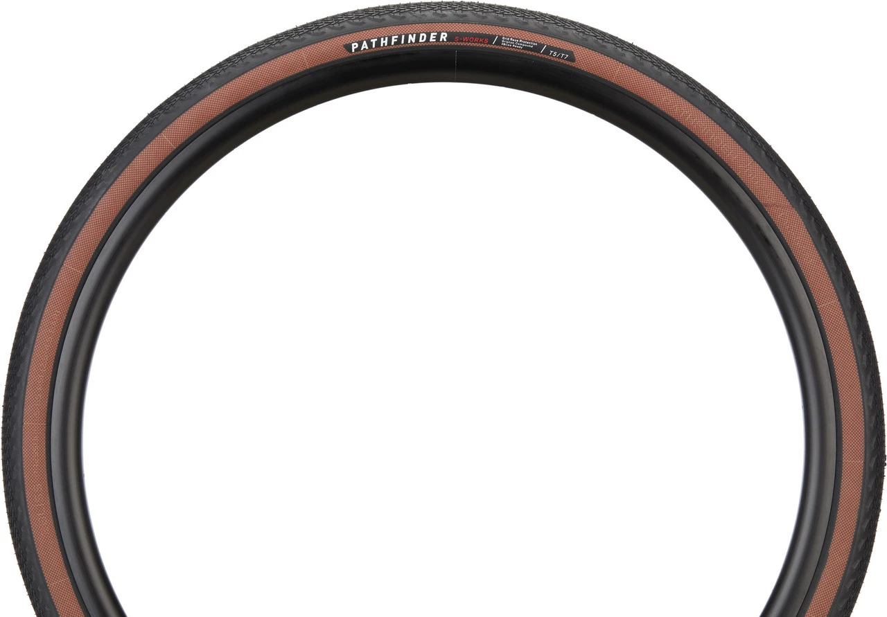 La S-Works Pathfinder de Specialized es una cubierta especialmente ligera y especialmente rápida de 28″ para gravilla, asfalto y terrenos ligeros. En comparación con la Pro-Version, presenta un perfil más fino, que ahorra peso y beneficia la velocidad. Sin embargo, las zonas de los hombros con agarre proporcionan un agarre fiable en terrenos sueltos. Para el compuesto de goma, Specialized confía en el compuesto dual GRIPTON®-T5 y T7 conocido en el deporte del MTB, que amortigua las vibraciones y por tanto tiene un efecto estabilizador, pero al mismo tiempo rueda con facilidad. La carcasa de nailon de 120 tpi con tecnología de protección antipinchazos Grid Race y BlackBelt ofrece seguridad y una conducción suave tanto fuera como dentro de la carretera. Con hilos de poliamida adicionales, muy resistentes al desgaste, pesan poco y proporcionan una respuesta directa con su elasticidad. Así quedas óptimamente protegido también en carreras contra sorpresas desagradables también y al mismo tiempo te beneficias de un comportamiento de rodadura óptimo. La S-Works Pathfinder viene con el clásico flanco marrón y se puede montar sin cámara de aire.